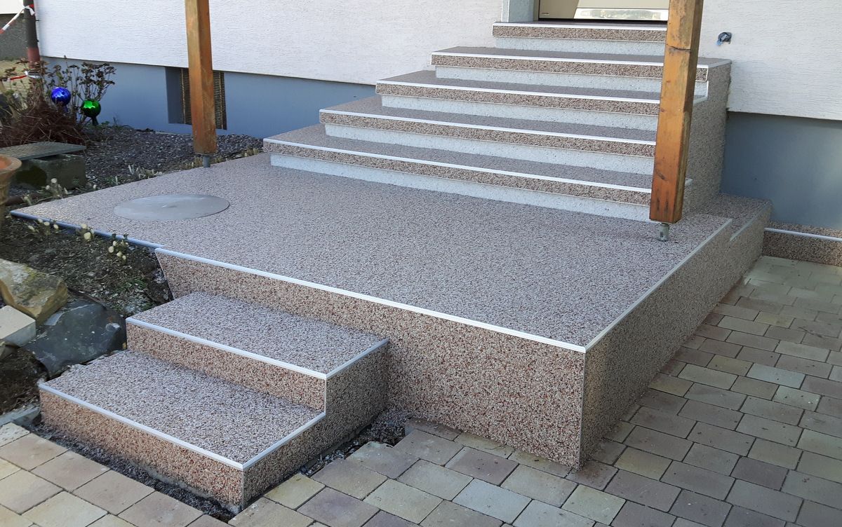 Unser Natursteinteppich ist die beste Alternative zu allen BodenbelÀgen wie Fliesen, Feinsteinzeug oder auch Parkett und Laminat und eignet sich insbesondere im Bereich Terrassensanierung, Treppensanierung und Balkonsanierung.